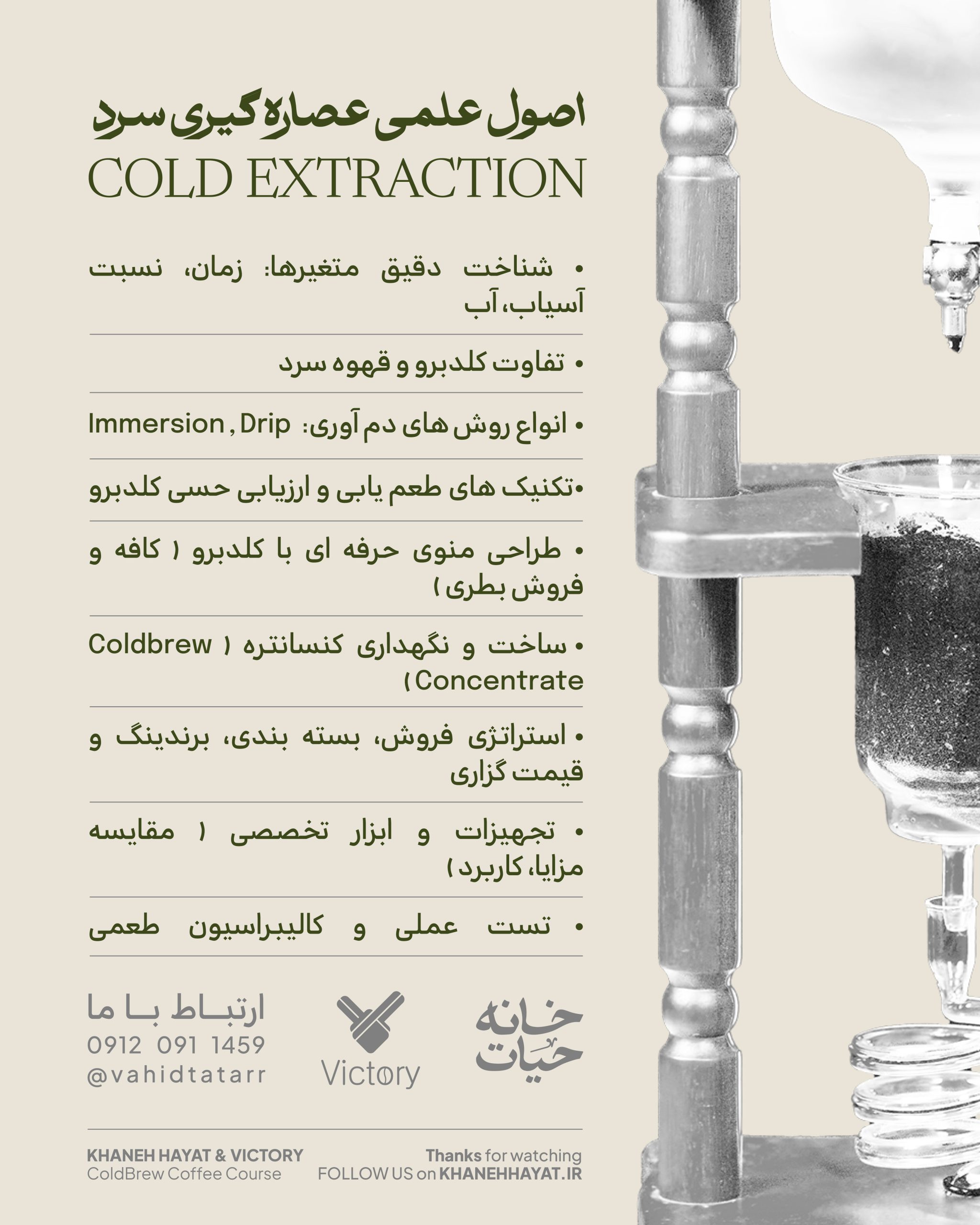 پس از این کلاس، شما قادر خواهید بود یک Cold Brew استاندارد و حرفهای تهیه کنید که در هر کافه یا خانهای بدرخشد.